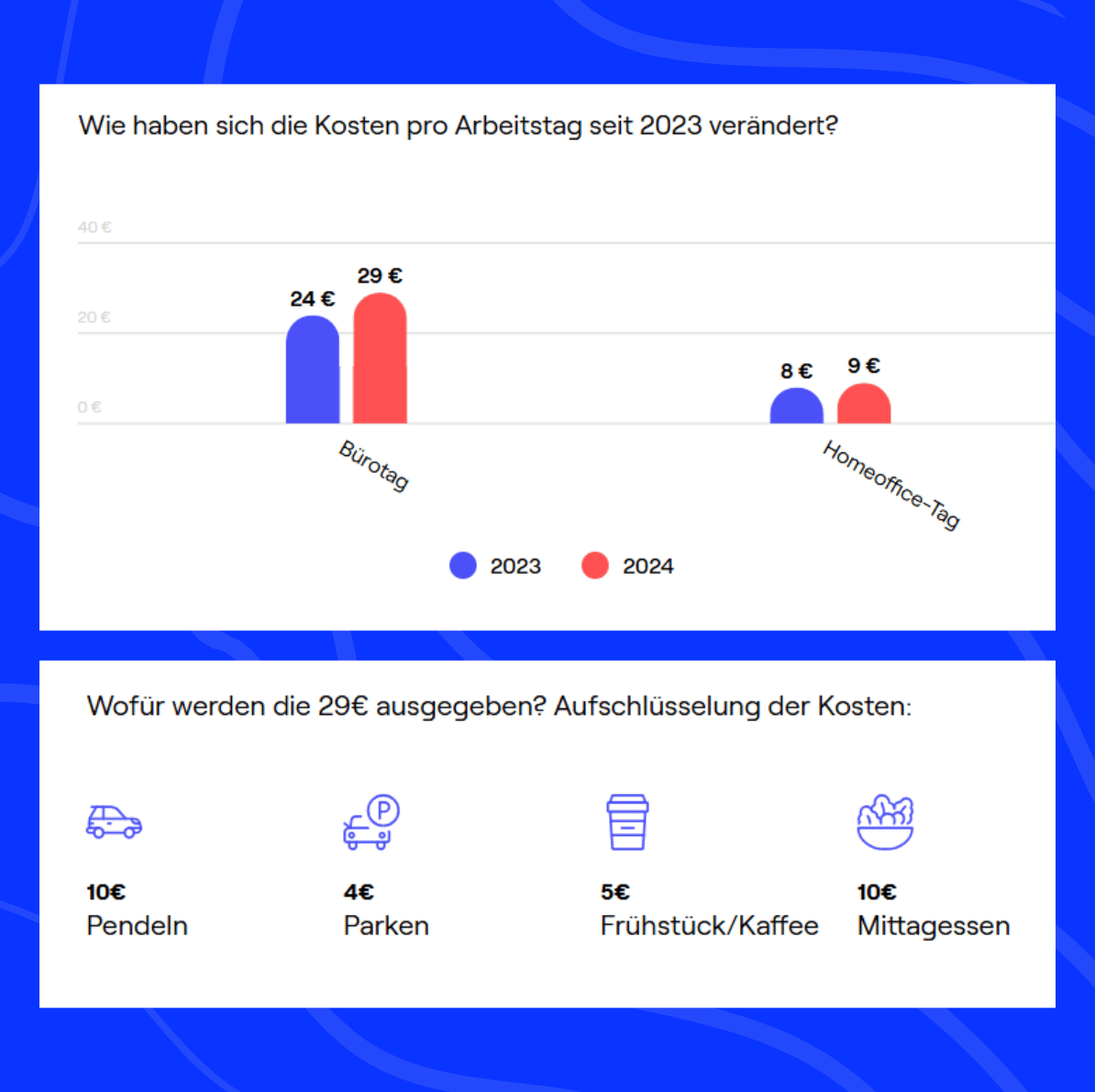 Die Differenz beträgt ganze 20 € pro Tag. Auf den Monat hochgerechnet sind das gute 400 € MEHR bei fünf vollen Office Days pro Woche. Und das sind Zahlen aus 2024. Mittlerweile dürfte das noch mehr sein mit den gestiegenen Preisen.